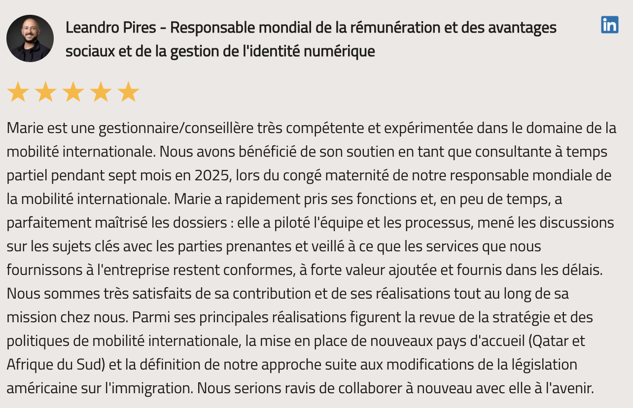 Depuis 2021, je travaille aux côtés de sous-traitants du secteur de la défense sur des sujets de mobilité stratégique : envoi de ressources à l’étranger, conformité, logistique RH à haut risque.